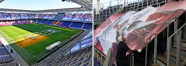 So präsentiert sich der (seit Beginn der laufenden Meisterschaft mit Ausnahme des ausverkauften Sektors Mitte Ost bzw. Gästefanbereichs geschlossene) Oberrang seit dem ersten Bundesliga-Spiel 2019 optisch elegant aufgepeppt. Dafür wurden eigene Tribünen-Banner kreiert, die insgesamt 5.760 Quadratmeter umfassen und verschiedene dynamische Motive von Roten Bullen zeigen.