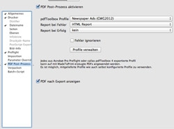 axaio MadeToPrint kann bei seiner Qualitätssicherung auf den Adobe InDesign-Live-Preflight zurückgreifen oder aber eine Reihe von zusätzlichen, eigenen Prüfoptionen ansteuern. Die Ergebnisse aus diesen Prüfungen werden im neu eingebauten Preflight-Report gebündelt, indem alle möglichen Probleme aufgelistet sind. Außerdem kann die verbesserte PDF-Engine jetzt kundenspezifischer konfiguriert werden. Basierend auf den Preflight-Ergebnissen werden, je nach Bedarf des Kunden, verschiedene Arten von Reports generiert. Verschiedene Kunden mit unterschiedlichen Anforderungen benötigen differenzierte Reports (wie z.B. Text-, XML-, PDF- oder HTML-Preflight-Reports) – die neue MadeToPrint-Version macht dies möglich. Darüber hinaus kann man nach fehlenden Links in bestimmten Ordnern und Unterordnern suchen lassen. Neben der Qualitätssicherung wurden auch in Hinblick auf die Ausgabe-Automatisierung Optimierungen vorgenommen: Beim Verarbeiten von Büchern steht dem Anwender zur Wahl, ob vor oder nach der Verarbeitung ein Skript auf das Buch angewendet werden soll. Kunden, die ‚Alternative Layouts‘ in ihren CS6-Entwürfen verwenden, können die Seitenbereiche für die